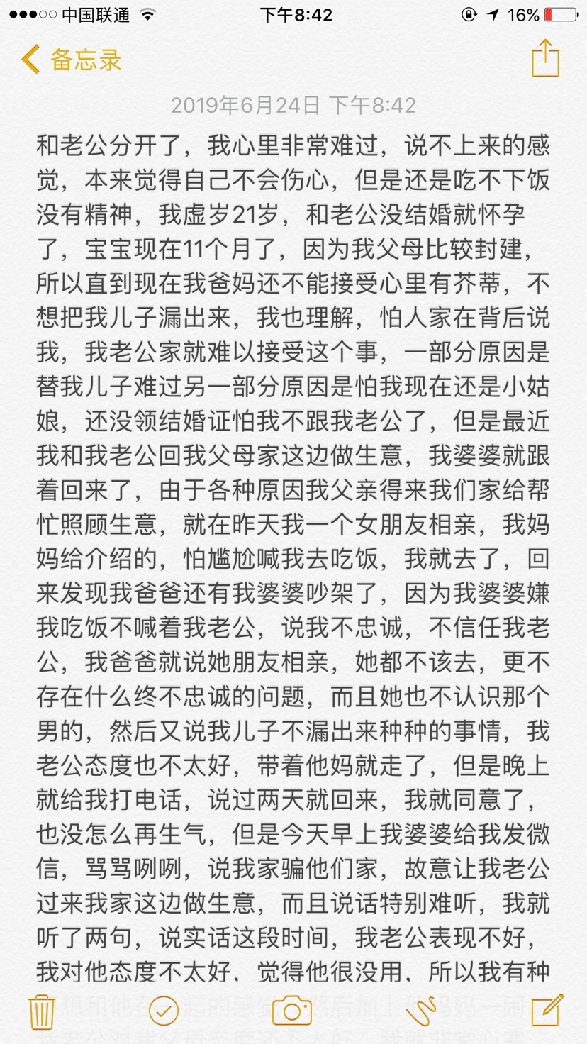 幸福的大地和宇宙[帖主]:但是现在我和我老公不确定会不会还在一起,互相都不联系了