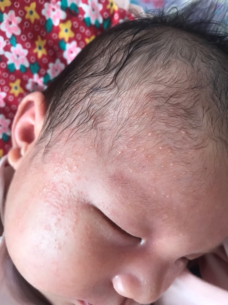 是湿疹,可以给宝宝开空调,几天就下去了,温度在22~26度就行