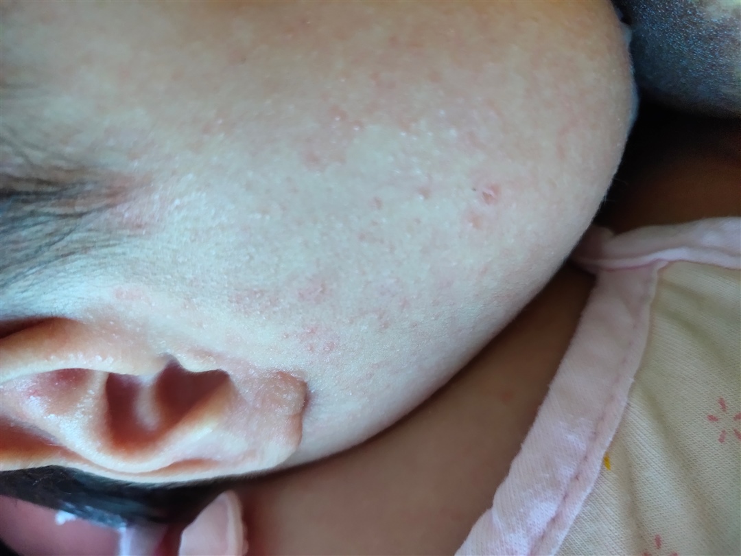 湿疹呀 热到了 开空调不要直吹他 买金银花煮水给他洗澡 沐浴露润肤露那些化学品都不用了