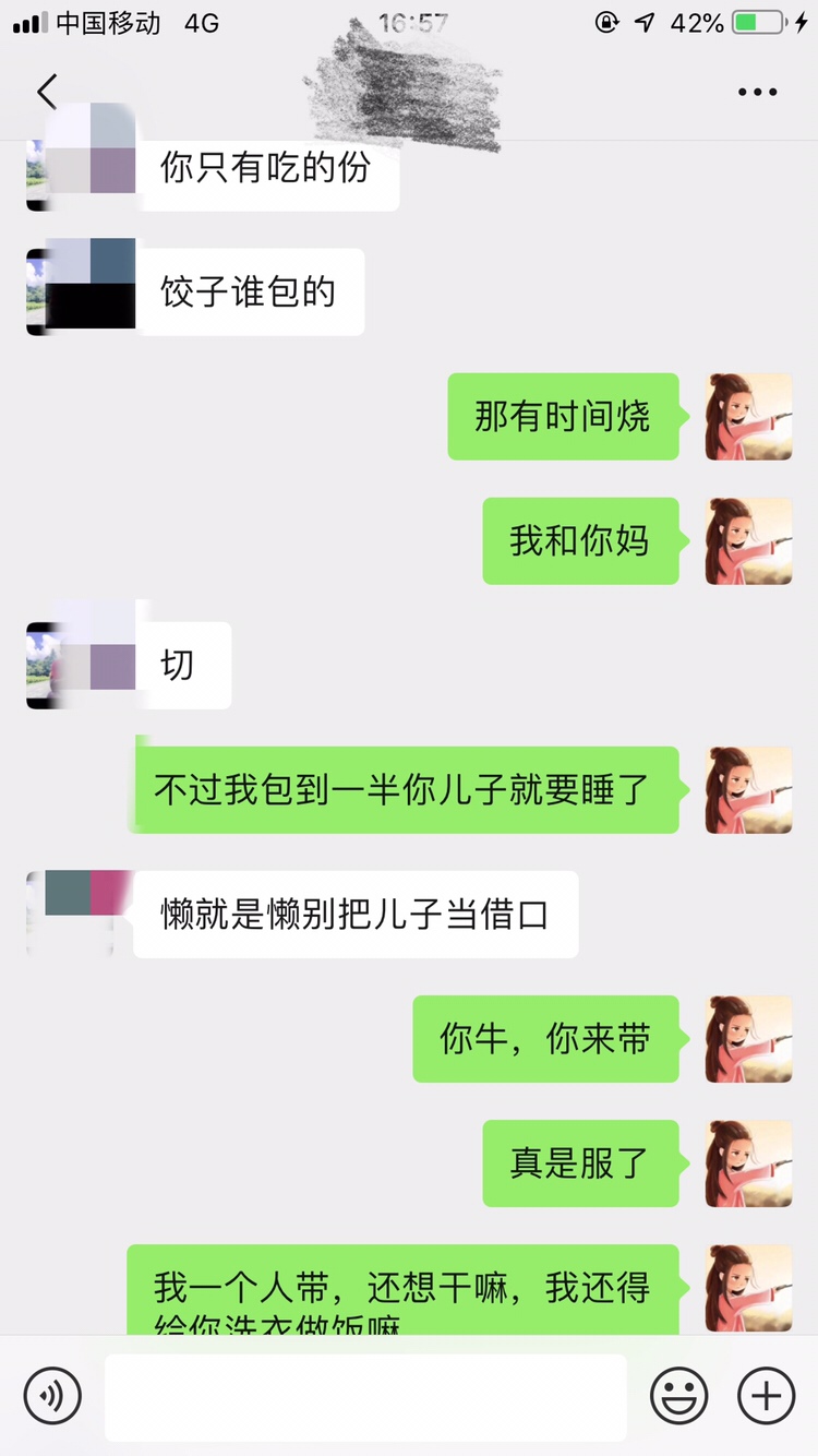 宝宝五个多月了,表示洗衣做饭所有家务都是婆婆在做,我除了带娃就是玩手机平板,除非婆婆有事我才帮忙做下。