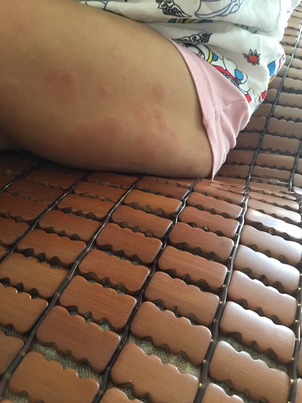 疹子啊,可能你家席子或者底下垫的有螨虫,拿出去暴晒一下啊