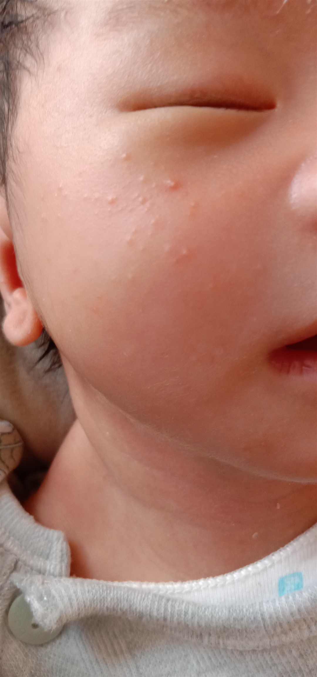 乐乐🐵:我家宝宝是昨天发现有的,今天太阳穴附近多了一点,还没有去看,给擦了药膏。我观察发现,好像宝宝就是在大人身上蹭来蹭去的时候,比较严重,如果躺着静静睡觉时候,就看起来好一些
