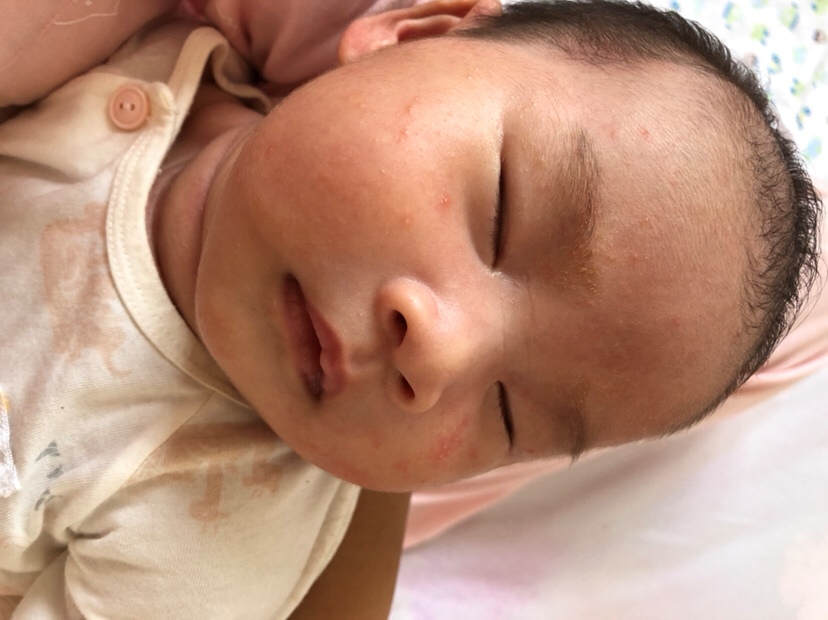湿疹,我家小时候也这样,说是我怀孕时候吃螃蟹吃多了,孩子才会这样