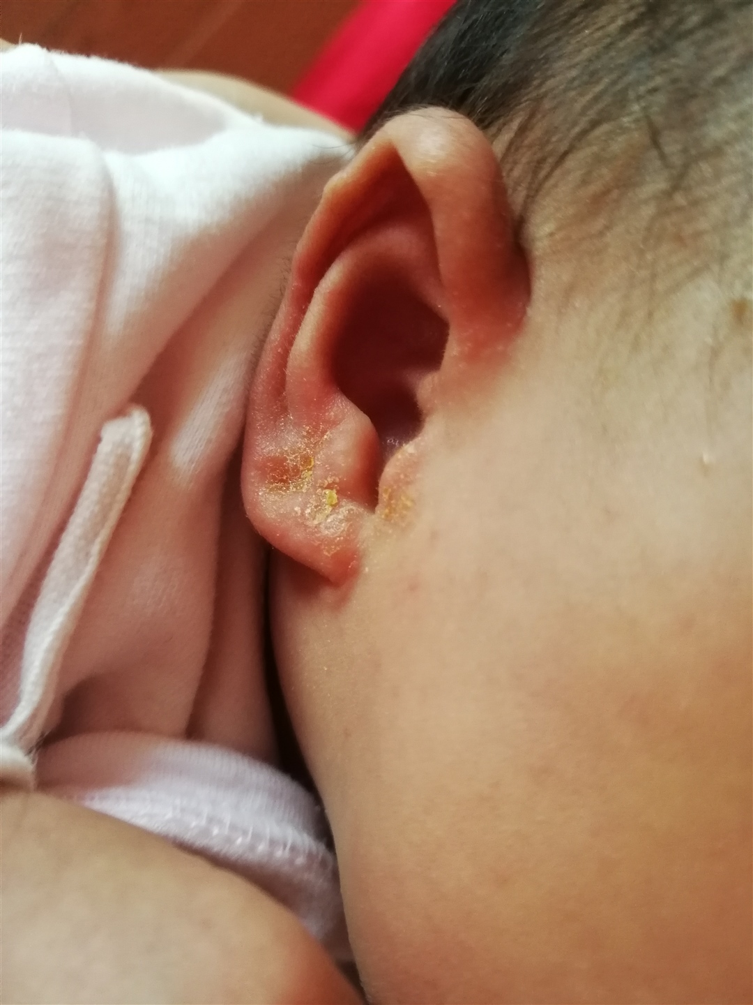 也可能是喂奶时嘴角流下来的奶,干了就这样,最好让医生看看