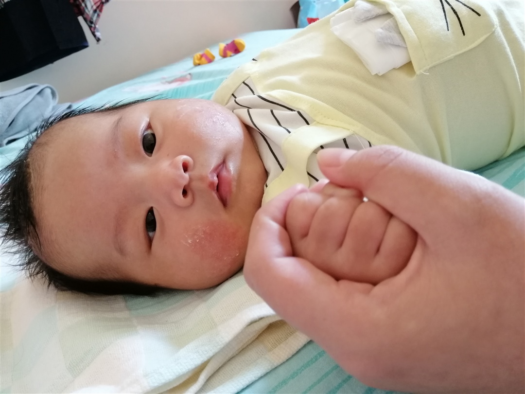 肥猪仔🐷[帖主]:现在都有擦山茶油保湿乳,每次洗了脸之后都会擦,比较麻烦的就是喂奶他老是玩,在蹭😂