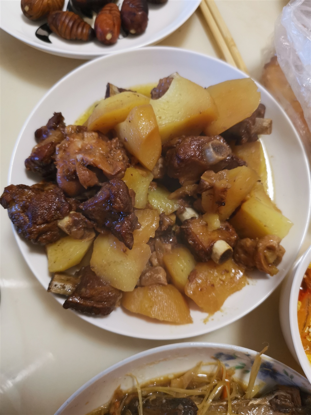宝宝睡得好香,婆婆做的饭菜看上去很有食欲。幸福哦