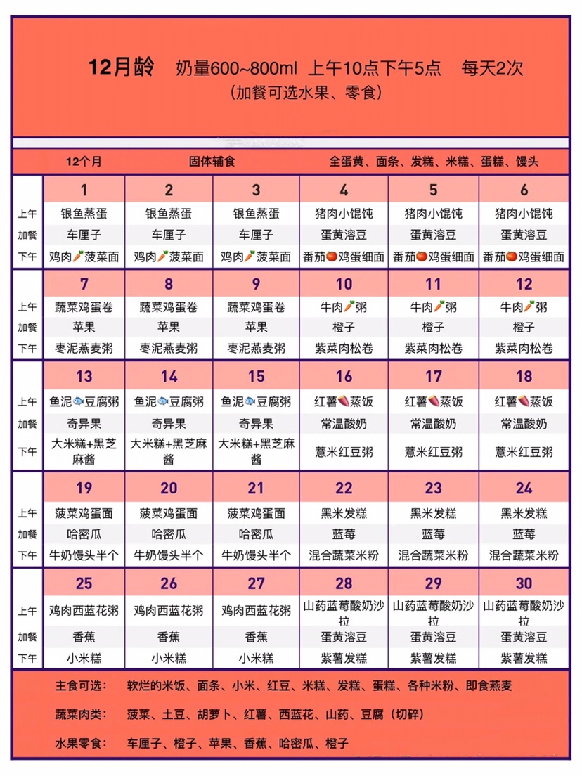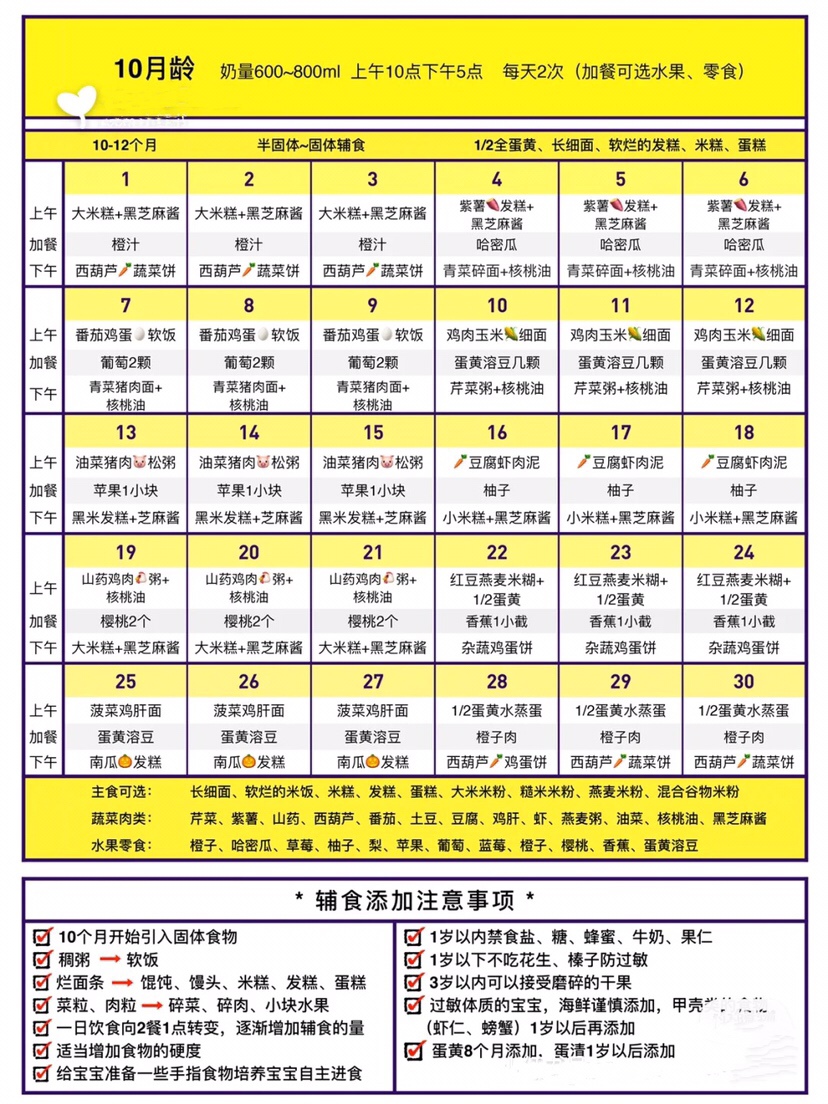 ✅10-12个月(1天2顿可加餐1顿)