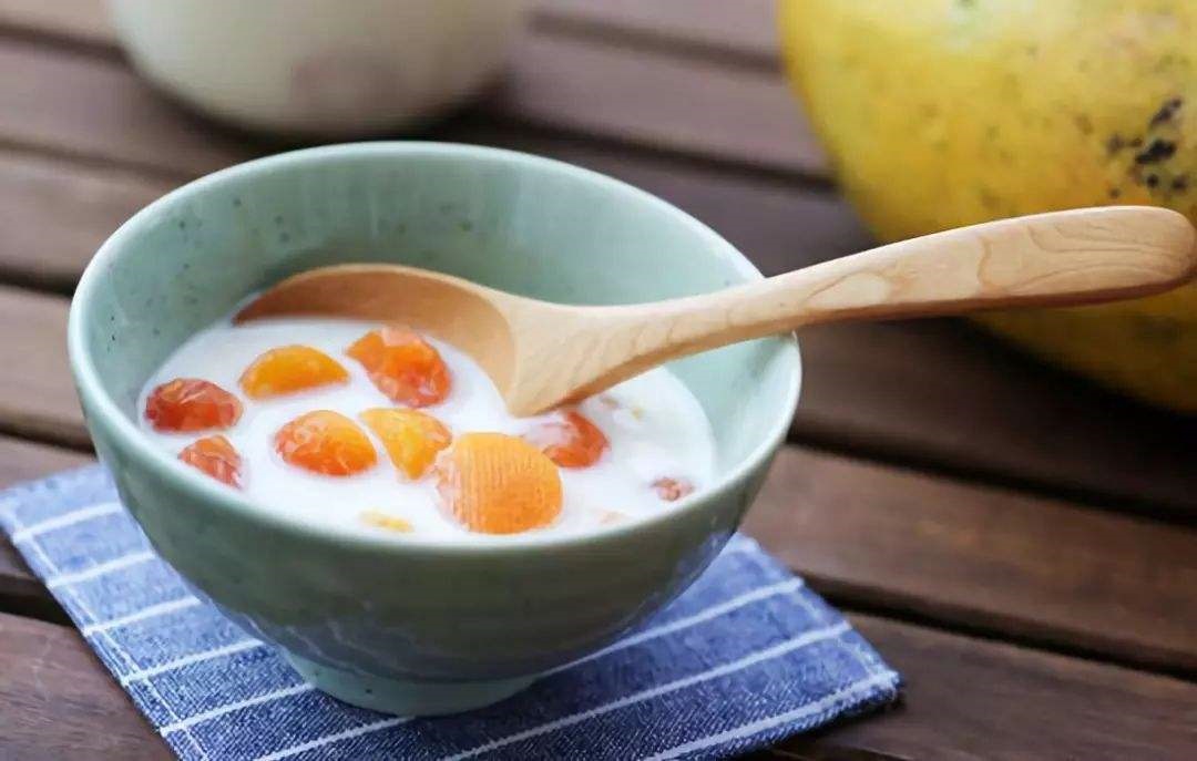 2、取1-2勺粉,用温水或者牛奶冲泡,加入木瓜搅拌即可。