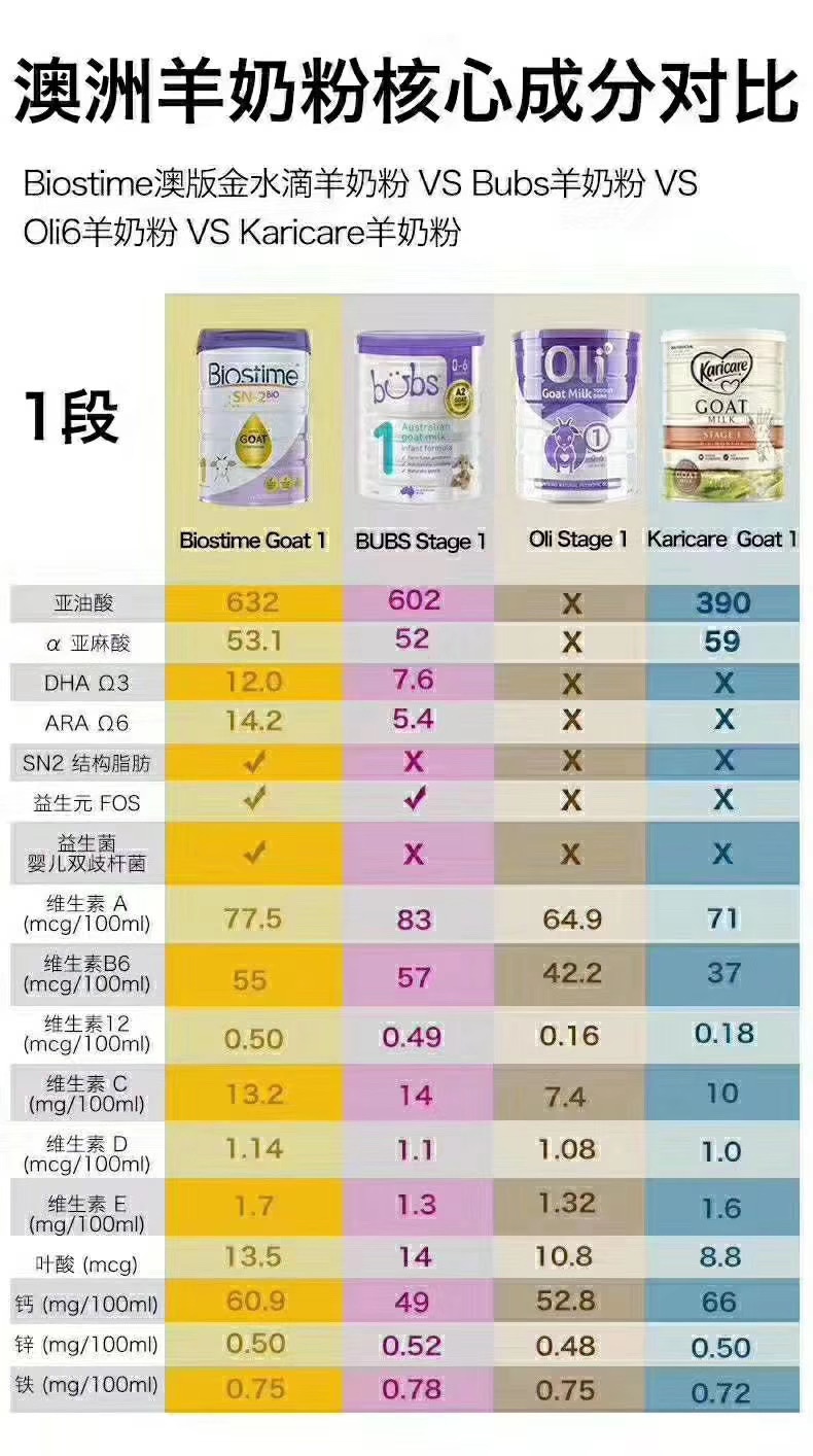 澳洲羊奶粉营养成分对比图、性价比最高的是BUBS羊奶、强烈推荐…