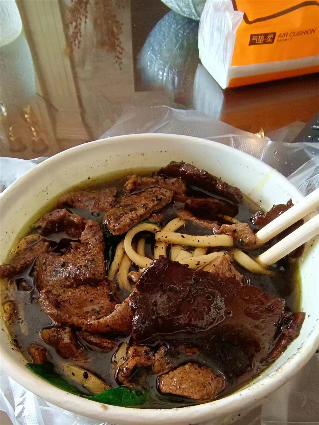 明天去医院检查 今天没有什么胃口 这碗牛肉面都是老公买给我的 突然感觉好紧张 今天晚上不会失眠吧